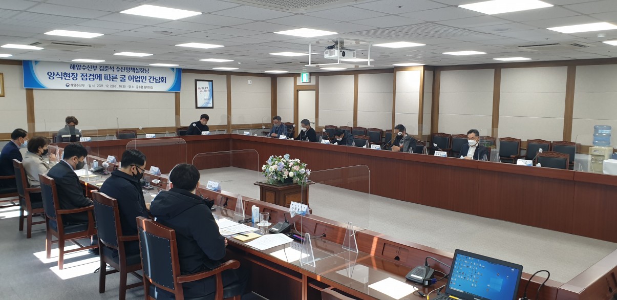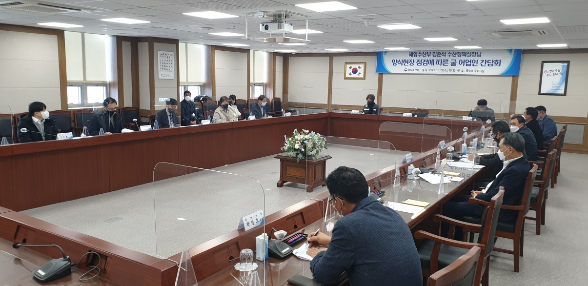 2021.12.22(수) 해양수산부 김준석 수산정책실장님 비롯한 관계부처에서 굴 대량폐사 현장방문 및 현안사항 논의를 위해 우리수협을 방문 하였습니다.