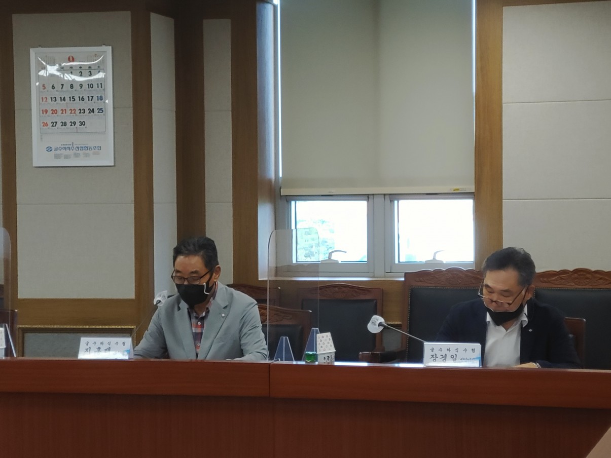 지난 2021915() 오후 3시 우리수협 중회의실에서 수산물() 수출확대를 위한 현장간담회가 개최되었습니다. 이번 회의는 해양수산부 주재로 해양수산부 수출가공진흥과 김성희 과장을 비롯하여 경상남도·통영시 유관부서 담당자, 한국농수산식품유통공사 구자성 부장, 굴수협 지홍태 조합장, 장경일 상임이사 및 김동명 수석이사, ()한국굴가공협회 장욱 회장을 비롯한 굴 수출업체 9개소 대표들이 참석하였습니다.