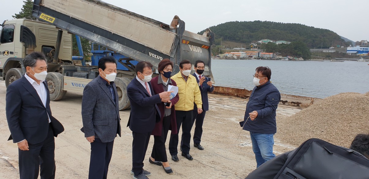 지난 11월 2일 굴껍데기 법안처리를 위한 기초자료수집과 재활용방안 모색 및 굴업계 애로사항을 청취하기 위하여 정점식 국회의원(통영·고성), 주철현 국회의원(여수), 강석주 통영시장, 강근식,정동영 경상남도의원, 박성미 여수시의원 등이 굴껍데기 해양배출 처리장, 자원화시설공장, 굴까기 작업장등 일선 현장을 방문하였으며 굴껍데기의 원활한 처리를 위한 폐기물관리법 일부개정(정점식의원)과 수산부산물 재활용 촉진에 관한 제정법률안(주철현의원)개정시 굴껍데기 재활용 세부지침 마련 및 냄새 제거 사업비 지원, 친환경부표 국고지원비를 (30% → 50%)로 상향 지원, 해상크레인 설치비 지원, 어장관리선도 노후기관·장비 설비 대체사업실시, 2021년 어업용 면세유 공급시설 개선사업 정부 예산 반영 건의 등 굴업계 현안 사항을 건의하였습니다.