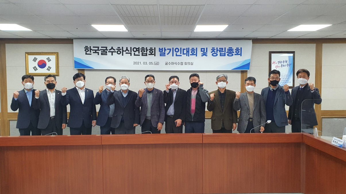 지난 202135() 오후 5, 우리수협 중회의실에서 (가칭)사단법인 한국굴수하식연합회 발기인대회 및 창립총회를 개최하였습니다.
