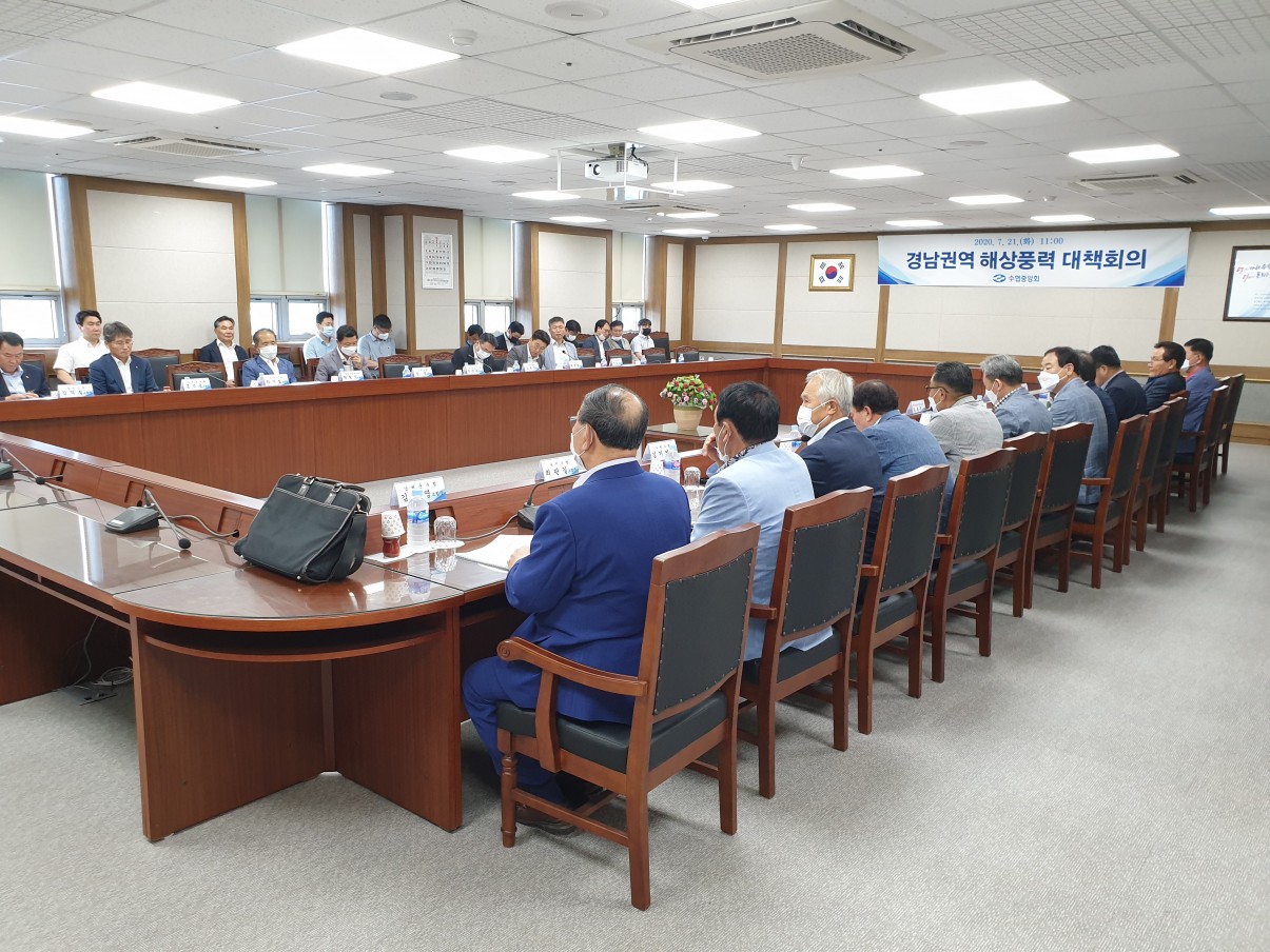 2020721일 우리수협 중회의실에서 지홍태 조합장님 외 경남지역 수협장님들과 수협중앙회 어촌지원부장 및 바다환경보전팀장이 참석한 가운데 경남권역 해상풍력발전 사업추진관련 대책회의를 개최하였습니다.