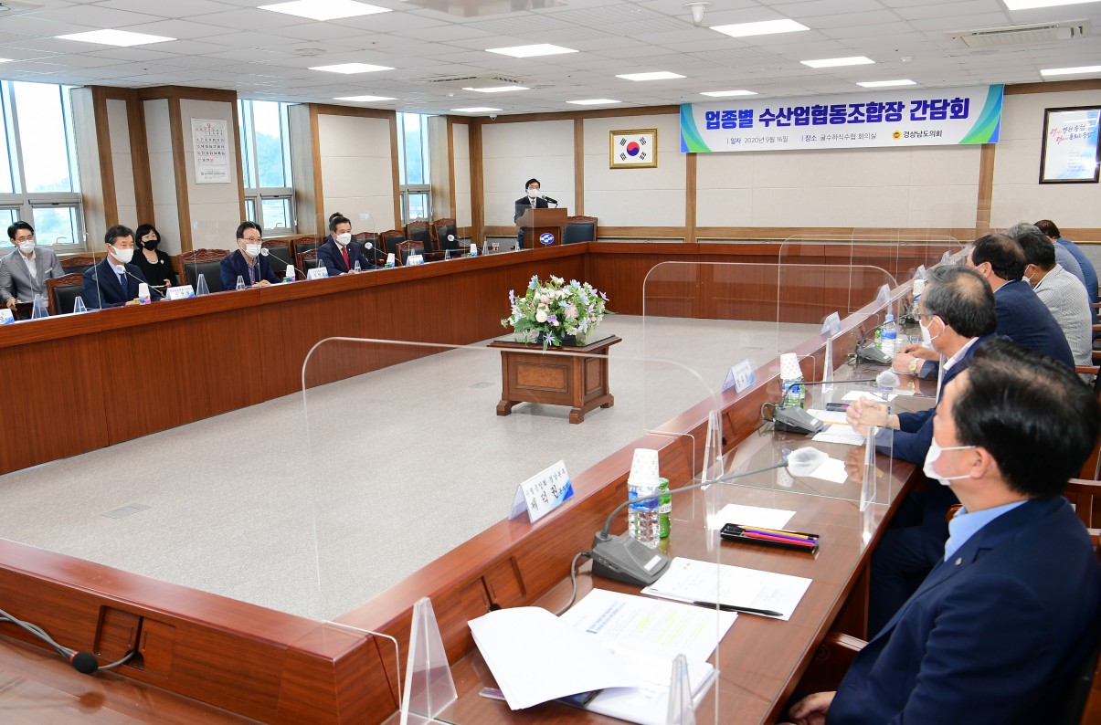 2020년9월16일(수),11:30 경상남도의회 김하용의장과 경남업종별수협장 간담회가 우리수협 중회의실에서 개최되었습니다.