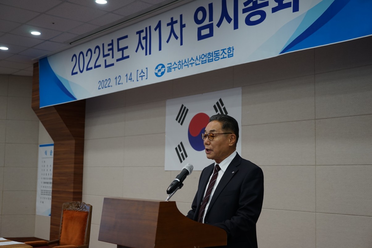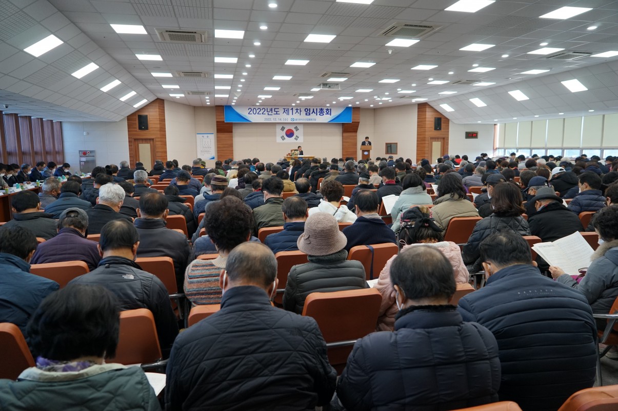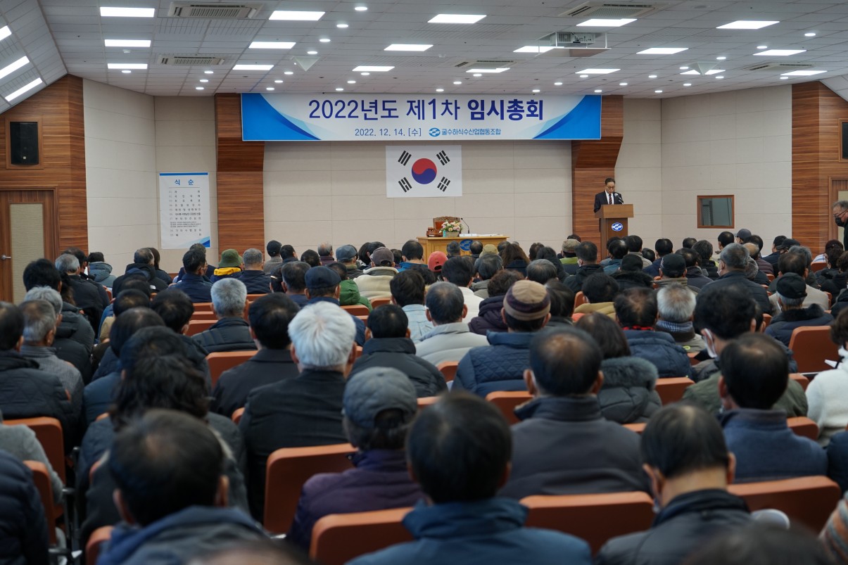 2022년도 제1차 임시총회를 2022년12월14일(수),10:30 우리수협 3층 대회의실에서 개최하였으며, 금번 임시총회는 코로나로 인한 계속적인 비대면 총회를 벗어나 3년만에 대면총회로 진행하였습니다.