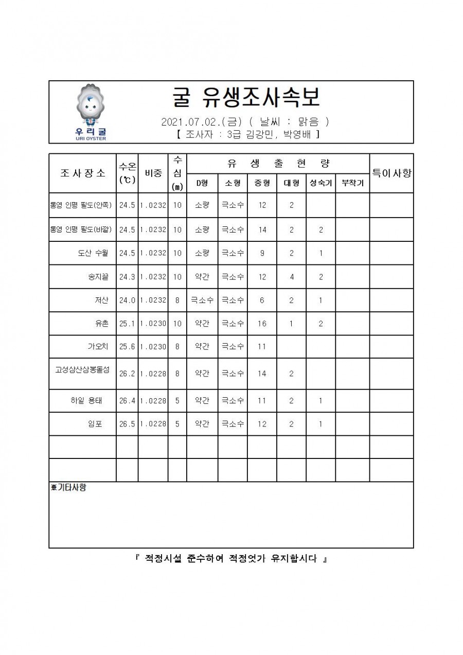 굴 유생조사 속보(2021.07.02)