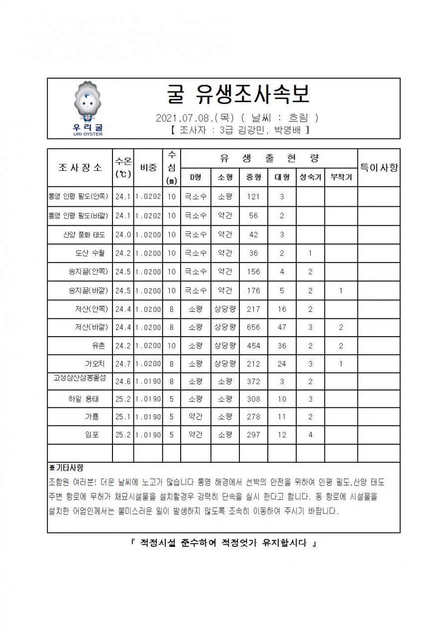 굴 유생조사 속보(2021.07.08)