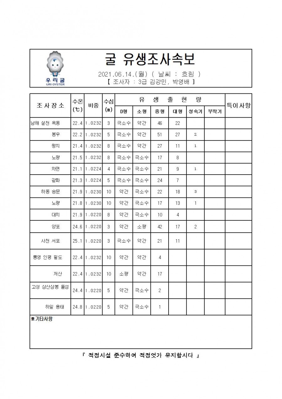 굴 유생조사 속보(2021.06.14)