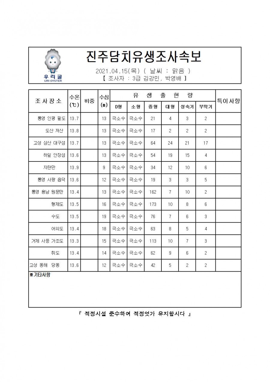 진주담치 유생조사 속보(2021.04.15)