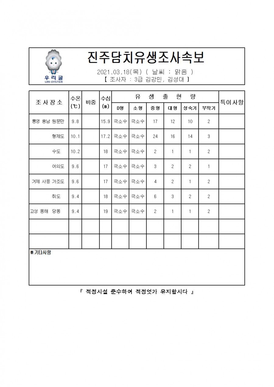 진주담치 유생조사 속보(2021.03.18)