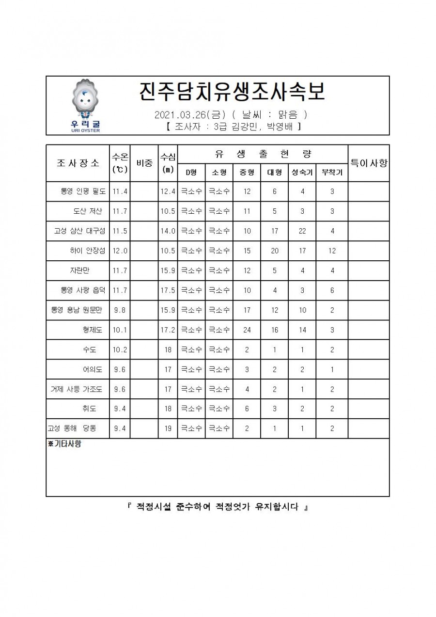 진주담치 유생조사 속보(2021.03.26)
