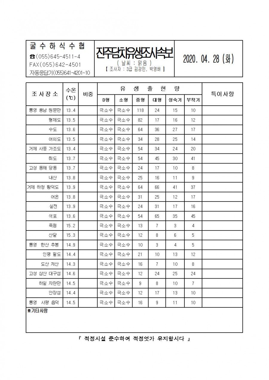 진주담치 유생조사 속보(2020.04.28)